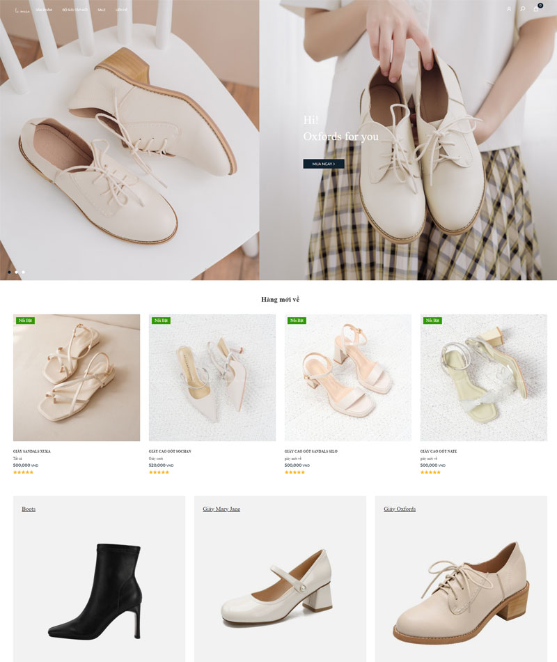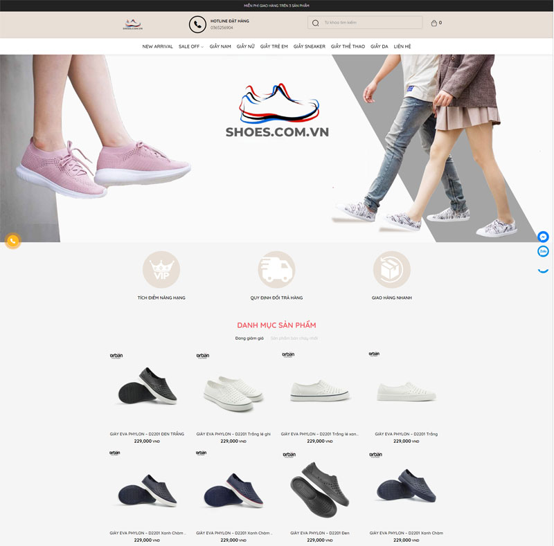 Thiết kế website bán giày dép, giúp doanh nghiệp có một giao diện trực quan và chuyên nghiệp, hướng tới nhu cầu và sở thích của khách hàng. Nhờ vào thiết kế chuyên nghiệp, giao diện website được tối ưu hóa chuẩn seo, từ việc sắp xếp layout theo kiểu hiển thị hình ảnh đến việc sắp xếp thông tin sao cho dễ dàng tìm kiếm.