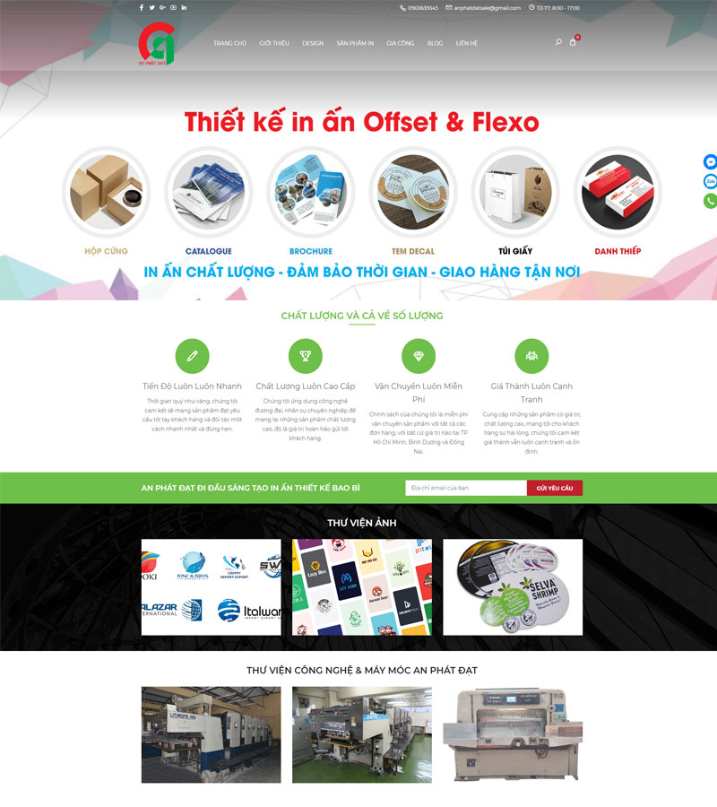 Mẫu giao diện website bao phì Phát Đạt rất phù hợp cho các doanh nghiệp in ấn, bao bì, nội thất,... được thiết kế với phong cách đơn giản, nhưng toát lên được sự thân thiện với người dùng, đem lại một trải nghiệm tuyệt vời đối với người dùng.