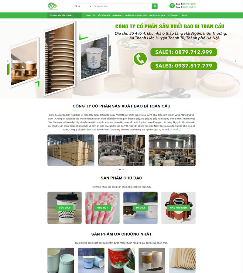 Là một doanh nghiệp chuyên cung cấp các sản phẩm cốc, bát, đĩa giấy, ống hút giấy,... rất nổi tiếng được nhiều người biết đến với công dụng giúp bảo vệ môi trường. Sở hữu mẫu giao diện thiết kế web bao bì với bố cục được sắp xếp hiện đại, logic màu sắc phù hợp làm nổi bật được sản phẩm đầy là điều mà rất nhiều doanh nghiệp đang mong muốn, bởi nếu sản phẩm đã chầm mà màu nền website cũng chầm thì sản phẩm sẽ không thể nào nổi bật được, khi người dùng nhìn vào cũng mất cảm tình.