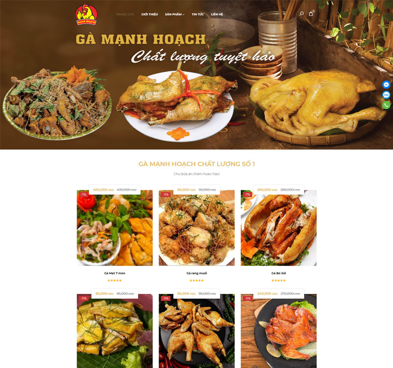 Với món ăn gà mạnh hoạch khá là nổi tiếng của Việt Nam, nhà hàng Hà Thành quán đã lựa chọn Web4s là đơn vị thiết kế website nhà hàng được lấy ý tưởng chính website Ok con dê làm giao diện cho website của doanh nghiệp này. Nhưng điểm nổi bật của website này sở hữu một tone màu khá trầm ấm, thể hiện lên được sự sang trọng của nhà hàng, giúp cho các món ăn cũng nổi bật, kích thích thị giác của khách hàng ngay từ cái nhìn đầu tiên truy cập vào website.