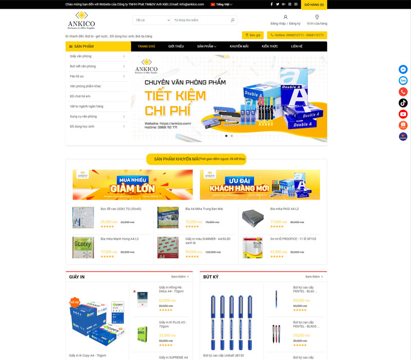 Website văn phòng phẩm chuyên nghiệp giúp doanh nghiệp hiển thị sản phẩm và dịch vụ của mình một cách hấp dẫn. Khách hàng có thể tìm hiểu thông tin chi tiết về sản phẩm, so sánh giá cả và đặt mua trực tiếp trên website. Điều này giúp tăng khả năng chốt hợp đồng và tăng doanh số bán hàng.
